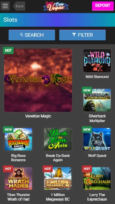 वेबसाइट की वीडियो स्लॉट लाइब्रेरी आकर्षक शीर्षकों से भरी है जैसे: ब्रेक दा बैंक अगेन, वेस्टर्न गोल्ड मेगावेज़, एज़्टेक गोल्ड मेगावेज़, सांता, मस्टैंग गोल्ड, क्रिसमस कैरोल मेगावेज़, गोल्डीलॉक्स एंड द वाइल्ड बियर्स, एजेंट जेन ब्लोंड रिटर्न्स, 1 मिलियन मेगावेज़ बीसी, ड्रैगन किंग, थंडरस्ट्रक II, डेडवुड xNudge, स्वीट बोनान्ज़ा क्रिसमस, माइटी स्टैलियन होल्ड एंड विन, लेप्रेचुन कैरोल, वुल्फ गोल्ड, माइल्स बेलहाउस एंड द गियर्स ऑफ़ टाइम, प्राइमल हंट, बिग बास बोनान्ज़ा, टाइटन थंडर रैथ ऑफ़ हेड्स, मनी फ़ार्म 2, द हाइव, शैमरॉक होम्स मेगावेज़, जंगल स्ट्राइप्स, सिल्वरबैक मल्टीप्लायर माउंटेन, नीरोज़ फ़ॉर्च्यून, हैमर ऑफ़ वल्कन, टेक सांताज़ शॉप, मेगावेज़ जैक, बूमिंग सेवन डीलक्स, गोल्ड वेन, थंडरस्ट्रक, मॉन्स्टर पॉप, आर्टेमिस बनाम मेडुसा, क्वेस्ट टू द वेस्ट, रेज़रटूथ, सुपर स्वीट्स, द वाइल्ड चेज़ टोक्यो गो, स्टैक्ड, फॉक्सपॉट, घोस्ट ग्लिफ़, हू वॉन्ट्स टू बी अ मिलियनेयर मेगावेज़, वुल्फ क्वेस्ट, बबल फ्रूट्स, सकुरा फॉर्च्यून, लीजेंड ऑफ द स्वॉर्ड, वीआईपी फ़िलथी रिचेज़, टेक द बैंक, चिली क्वेस्ट, 88 फ़्रेन्ज़ी फॉर्च्यून, ऐलिस इन वाइल्डलैंड, टॉवर ऑफ फ़ोर्टुना, अमेजिंग लिंक अपोलो, वाइल्ड ड्रॉप्स, पाइरेट किंगडम मेगावेज़, अरेबियन स्पिन्स, डंगऑन क्वेस्ट, स्टॉर्मिंग फ्लेम, वाइल्ड टोम ऑफ द वुड्स, बैक टू वीनस...