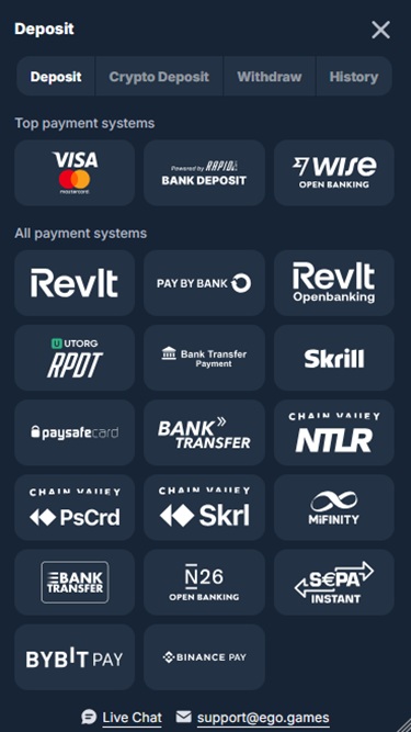 EgoGames एक ऑनलाइन कैसीनो है जो 2025 में लॉन्च हुआ था और इसने कैसीनो गेम्स और स्पोर्ट्स बेटिंग विकल्पों की एक विस्तृत श्रृंखला पेश करके एक विशाल दर्शक वर्ग तैयार किया है, जहाँ खिलाड़ी ऑनलाइन स्लॉट्स, लाइव डीलर गेम्स, टेबल गेम्स और क्रैश गेम्स की अंतहीन श्रृंखला खेल सकते हैं। यह ब्रांड जर्मनी, ऑस्ट्रिया, स्विट्ज़रलैंड, इटली, स्वीडन और आयरलैंड के खिलाड़ियों को स्वीकार करता है और उन्हें सभी गेम्स खेलने और उपलब्ध प्रमोशन और बोनस का आनंद लेने के लिए आमंत्रित करता है।