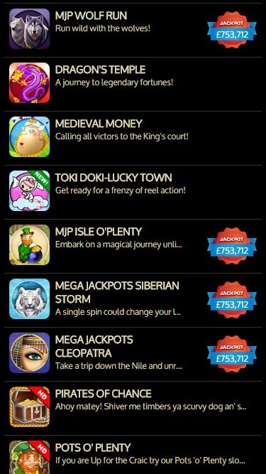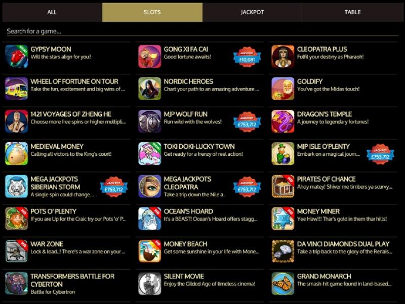 एलीट मोबाइल कैसीनो में खेलने के लिए बड़ी संख्या में स्लॉट उपलब्ध हैं, जिनमें दर्जनों वीडियो स्लॉट और कुछ क्लासिक 3-रील टाइटल शामिल हैं। ये सभी स्लॉट छोटी स्क्रीन के लिए डिज़ाइन किए गए हैं और सीमित जगहों पर भी बहुत अच्छे लगते और खेलते हैं।