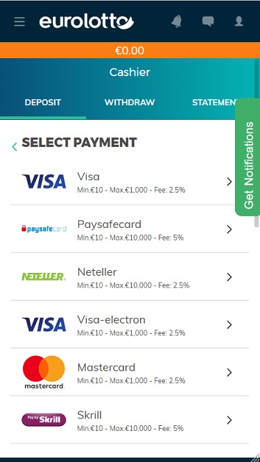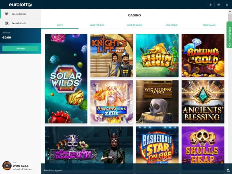 यूरोलोट्टो कैसीनो Microgaming, Net Entertainment, BetSoft, Barcrest, Big Time Gaming, ELK Studios, Evolution Gaming, iSoftBet, Oryx, Play'n GO, Thunderkick, Yggdrasil, Pragmatic Play, Nolimit City, Red Tiger Gaming, Fantasma Games, Kalamba, Triple Edge Studios, Northern Lights Gaming, All41 Studios, TrueLab Games, SpinPlay Games, Games Global, 2by2 Gaming, Bally Technologies, Blueprint Gaming, NYX Interactive, SG Interactive, Gamomat, Slingshot Studios, Golden Hero, Fortune Factory Studios, Gamevy, Crazy Tooth Studio and Half Pixel Studios द्वारा संचालित है, और इसके कैसीनो गेम एक वेब-आधारित प्लेटफ़ॉर्म के माध्यम से प्रदान किए जाते हैं जो आपके वेब-ब्राउज़र के माध्यम से खेलने की अनुमति देता है।