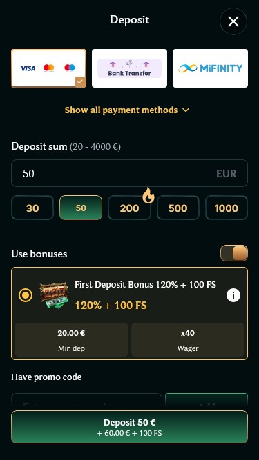सबसे पहले, वेबसाइट के समग्र डिज़ाइन और कार्यक्षमता पर ध्यान देना महत्वपूर्ण है, और यह ब्रांड इसमें उत्कृष्ट है। कैसीनो का डिज़ाइन आकर्षक और शानदार है, जिसमें सुंदर गहरे रंग की पृष्ठभूमि और हरे रंग के शेड्स का संयोजन है, जबकि उपयोगकर्ता इंटरफ़ेस खिलाड़ियों को सभी अनुभागों को आसानी से ब्राउज़ करने और गेम लोड करने की सुविधा देता है।