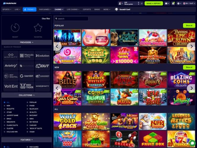 फेयरपारी कैसीनो कुछ सबसे प्रसिद्ध iGaming स्टूडियो द्वारा प्रदान की गई एक प्रभावशाली गेमिंग लाइब्रेरी के साथ आता है।