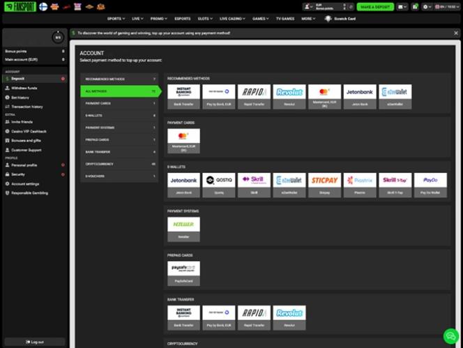 सभी कैसीनो गेम्स का आनंद लेने के अलावा, आप ब्रांड के स्पोर्ट्स बेटिंग सेक्शन में विभिन्न खेलों और ई-स्पोर्ट्स मैचों पर भी अपनी किस्मत आजमा सकते हैं। स्पोर्ट्सबुक अविश्वसनीय रूप से विस्तृत है और इसमें अभूतपूर्व खेलों की जानकारी है जिन पर आप लाइव मैचों से पहले या उनके दौरान दांव लगा सकते हैं। इसके अलावा, वर्चुअल स्पोर्ट्स बेटिंग विकल्प भी उपलब्ध हैं।