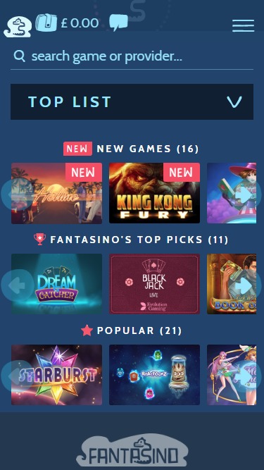 फैंटासिनो Microgaming, Net Entertainment, Evolution Gaming, Habanero Systems, iSoftBet, playson, Quickspin, Yggdrasil, Wazdan, Booming Games, Stakelogic, Pragmatic Play, Nolimit City, IGT, Red Rake Gaming, Spearhead Studios, HungryBear Gaming, Games Global, EveryMatrix, Media Live, NYX Interactive, Genii, Aurify Gaming, BB Games and Armadillo Studios द्वारा संचालित है, और कैसीनो के गेम एक वेब-आधारित इंस्टेंट प्ले वेब प्लेटफ़ॉर्म के माध्यम से प्रदान किए जाते हैं जो सीधे आपके पसंदीदा इंटरनेट ब्राउज़र के माध्यम से लोड होता है। कैसीनो मोबाइल प्ले को भी पूरी तरह से सपोर्ट करता है, यानी आप चलते-फिरते खेलने के लिए अपने स्मार्टफोन या टैबलेट के माध्यम से गेम लोड कर सकते हैं।