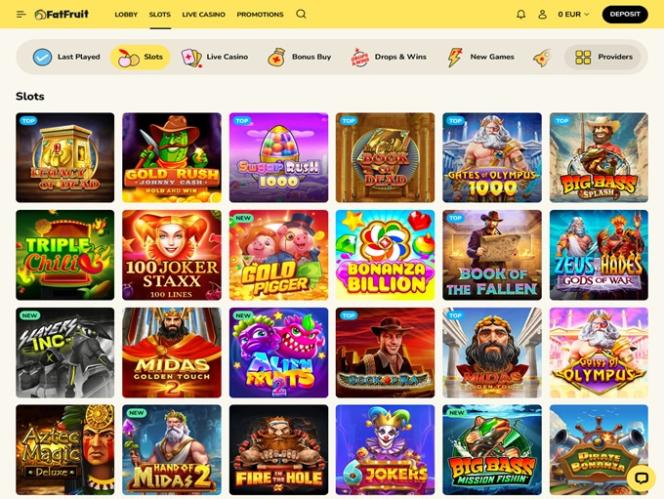 फैटफ्रूट कैसीनो भी इससे अलग नहीं है, क्योंकि टीम ने 120 से ज़्यादा अद्वितीय डेवलपर्स वाले कई उपलब्ध स्टूडियो तक पहुँच बनाई है। इस तरह का चयन उद्योग के कुछ सर्वश्रेष्ठ डेवलपर्स को टक्कर देता है, और हमें लगता है कि खिलाड़ियों को अपनी पसंद और प्राथमिकताओं से पूरी तरह मेल खाने वाले हज़ारों टाइटल ढूंढने में कोई दिक्कत नहीं होगी।