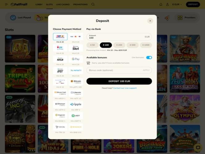 शुरुआत के लिए, फैटफ्रूट कैसीनो अपने उपलब्ध खेलों की लाइब्रेरी से खिलाड़ियों को प्रसन्न करेगा, क्योंकि विकल्प अविश्वसनीय रूप से विस्तृत और विस्तृत हैं। चाहे आप खुद को असली पैसे वाले स्लॉट , लाइव डीलर गेम्स या ऑनलाइन टेबल गेम्स के प्रशंसक मानते हों, आपकी उंगलियों पर विकल्पों की संख्या चौंका देने वाली है, और सभी सामग्री को देखने में आपको हज़ारों घंटे लगेंगे।