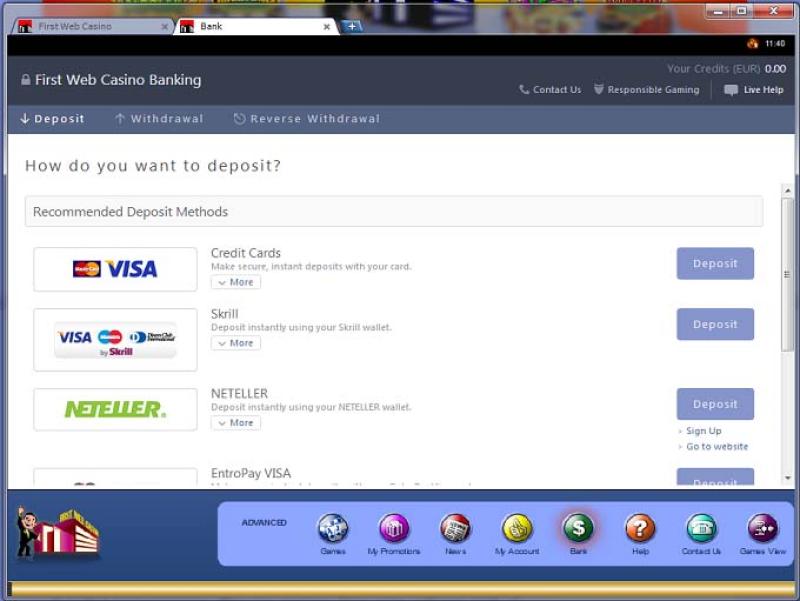 First Web Casino Microgaming and Games Global द्वारा संचालित है, जो कैसीनो को सैकड़ों खेलों की एक लाइब्रेरी प्रदान करता है। कैसीनो एक डाउनलोड करने योग्य सॉफ़्टवेयर के माध्यम से उपलब्ध है, जो खेलों को सीधे आपके कंप्यूटर पर उपलब्ध कराता है।Blackjack