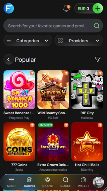 खेलों और मनोरंजन के संदर्भ में, यह तुरंत स्पष्ट हो गया कि कैसीनो ने अपने खिलाड़ियों को जुआ गतिविधियों की एक विस्तृत श्रृंखला प्रदान करने में बहुत प्रयास किया है। यहाँ हज़ारों ऑनलाइन स्लॉट, लाइव डीलर , क्रैश गेम और टेबल गेम उपलब्ध हैं, और हर शैली में कई उपश्रेणियाँ और विविधताएँ हैं।