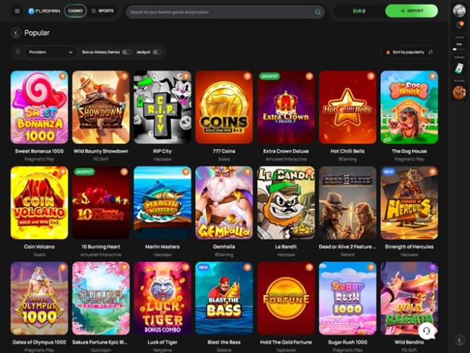 अगर इस बात पर कोई प्रतियोगिता हो कि किस प्रकार के जुए के खेल में कैटलॉग में सबसे ज़्यादा विविधता है, तो ऑनलाइन स्लॉट्स भारी जीत हासिल करेंगे। फ्लैगमैन कैसीनो में असली पैसे वाले स्लॉट्स की संख्या बहुत ज़्यादा है, और आपको सभी श्रेणियों और शैलियों को ब्राउज़ करने में काफ़ी समय लगेगा, जिनमें बोनस बाय, मेगावेज़, क्लस्टर पेज़, और लगभग हर तरह का स्लॉट शामिल है जिसके बारे में आप सोच सकते हैं।