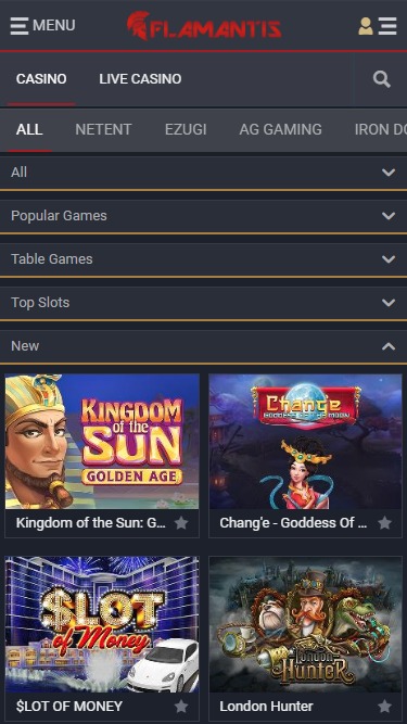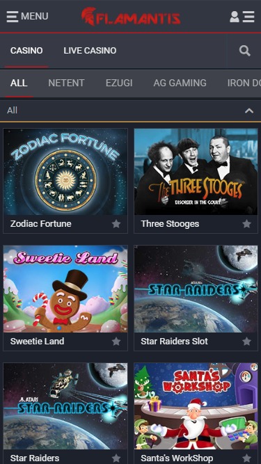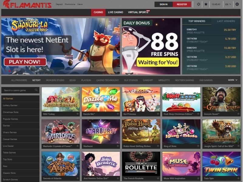 फ़्लैमंटिस कैसीनो में कई स्लॉट उपलब्ध हैं, जिनमें नेट एंटरटेनमेंट और बेटसॉफ्ट के शीर्षक भी शामिल हैं। फ़्लैमंटिस में खिलाड़ियों को कई 3D स्लॉट, वीडियो स्लॉट और कुछ क्लासिक गेम मिलेंगे, और कुछ बड़े प्रोग्रेसिव जैकपॉट भी जीते जा सकते हैं।