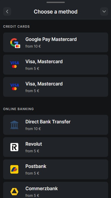 कैसीनो फिएट मुद्राओं और क्रिप्टोकरेंसी दोनों को स्वीकार करता है।