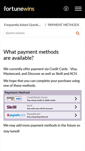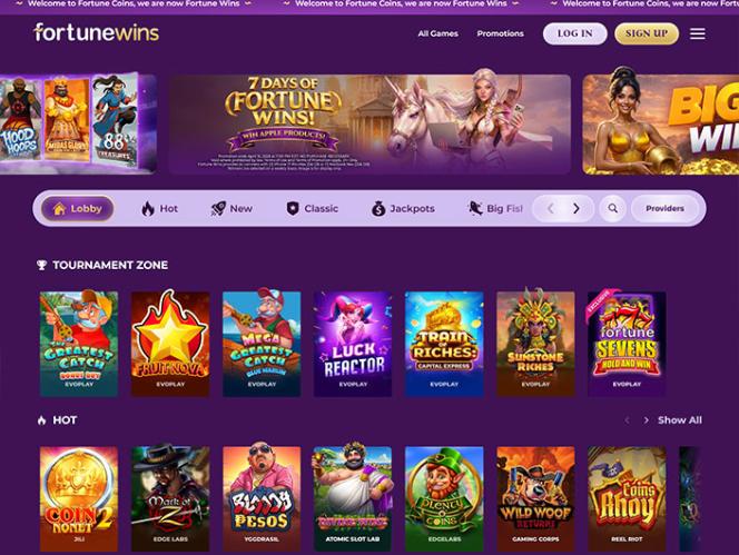 2022 में स्थापित, फॉर्च्यून विन्स एक स्वीपस्टेक्स गेमिंग साइट है जिसके पास उद्योग का व्यापक अनुभव है और यह कैसीनो शैली के खेलों की एक विस्तृत श्रृंखला प्रदान करती है, जिसमें ऑनलाइन स्लॉट, लाइव डीलर गेम और क्रैश गेम शामिल हैं, साथ ही विभिन्न प्रचार और बोनस भी प्रदान करती है। वेबसाइट संयुक्त राज्य अमेरिका और कनाडा के खिलाड़ियों को स्वीकार करती है, हालांकि कनाडा में इडाहो, मिशिगन, नेवादा, वाशिंगटन डीसी और ओंटारियो और क्यूबेक जैसे कुछ राज्यों में यह प्रतिबंधित है।