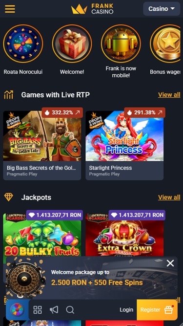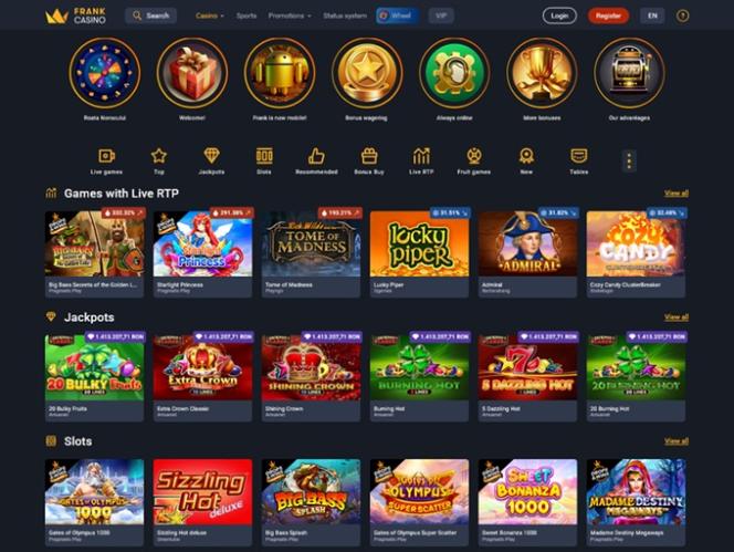 फ्रैंक कैसीनो एक ऑनलाइन सट्टेबाजी साइट है जिसकी स्थापना 2016 में पोमाडोरो एनवी द्वारा की गई थी। यह कैसीनो कुराकाओ से संचालित होता है और पूरे यूरोप में अपनी सेवाएँ प्रदान करता है, जहाँ बड़े नामी डेवलपर्स के गेम उपलब्ध हैं। यह कैसीनो सप्ताह में केवल तीन बार भुगतान करता है, और बोनस पर दांव लगाने की कुछ बहुत ही ऊँची शर्तें हैं, यही दोनों बातें फ्रैंक कैसीनो को खेलने के लिए एक बेहतरीन जगह नहीं बनाती हैं।