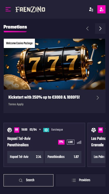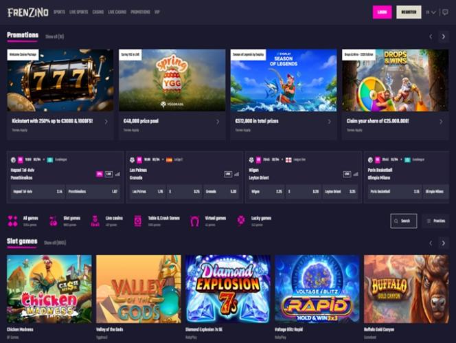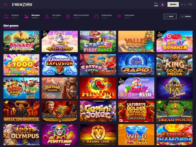 फ्रेन्ज़िनो एक क्रिप्टो-फ्रेंडली ऑनलाइन कैसीनो और स्पोर्ट्सबुक है जो काहनावके लाइसेंस के तहत संचालित होता है। यह स्लॉट, बैकरेट, रूलेट और ब्लैकजैक जैसे टेबल गेम, साथ ही क्रैश गेम और वर्चुअल गेम सहित हजारों कैसीनो गेम प्रदान करता है।