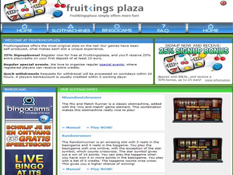फ्रूटकिंग्सप्लाज़ा कैसीनो एक ऑनलाइन सट्टेबाजी साइट है जिसकी स्थापना 2006 में हुई थी और यह विशेष रूप से नीदरलैंड के खिलाड़ियों को सेवाएँ प्रदान करती है। इस कैसीनो का तेज़ भुगतान और उत्कृष्ट समर्थन का इतिहास रहा है, हालाँकि साइट और गेम बेहद पुराने हैं।कैसीनो जानकारी