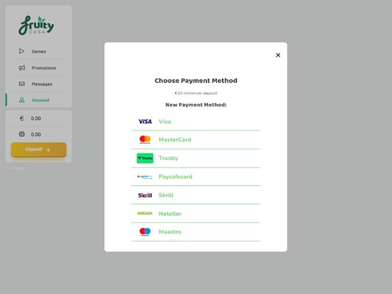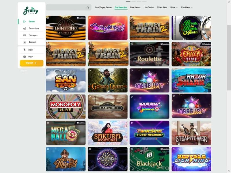 फ्रूटीकासा कैसीनो एक ऑनलाइन सट्टेबाजी साइट है जिसने 2014 में अपनी शुरुआत की थी। इस कैसीनो का स्वामित्व और संचालन व्हाइट हैट (होल्डिंग) लिमिटेड के पास है और यह यूनाइटेड किंगडम में अपनी सट्टेबाजी सेवाएँ प्रदान करता है। इस कैसीनो में गेमिंग की एक बहुत बड़ी लाइब्रेरी है और इसके प्रचारों में उचित नियमों और शर्तों के लिए इसकी सराहना की जाती है, लेकिन भुगतान का समय कई अन्य ऑनलाइन सट्टेबाजी साइटों की तुलना में धीमा है। हमारी सहयोगी साइट ने फ्रूटी कासा कैसीनो के साथ एक साक्षात्कार किया, जिसमें उनकी साइट के बारे में कुछ अच्छी जानकारी दी गई है, जिसे यहाँ पढ़ा जा सकता है।कैसीनो जानकारी