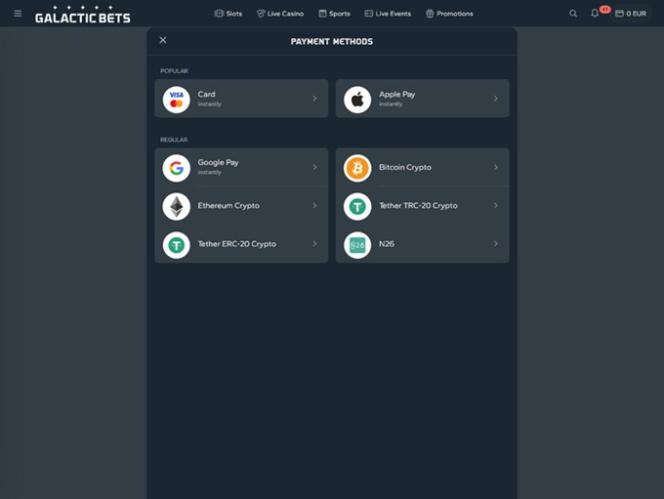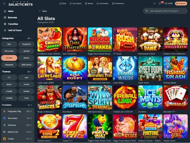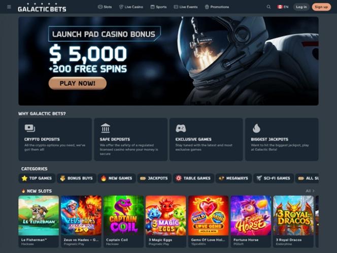 GalacticBets एक ऑनलाइन कैसीनो है जो कैसीनो गेम्स की एक विशाल श्रृंखला पेश करता है, जिसमें हजारों रियल-मनी स्लॉट, लाइव डीलर, टेबल गेम्स और इंस्टेंट-क्रैश गेम्स के साथ-साथ स्पोर्ट्स बेटिंग का एक बड़ा सेक्शन भी शामिल है। यह ब्रांड कई प्रमोशन और बोनस भी प्रदान करता है और जर्मनी, ऑस्ट्रिया, स्विट्जरलैंड, ऑस्ट्रेलिया और कनाडा के खिलाड़ियों को इसे आज़माने के लिए आमंत्रित करता है!