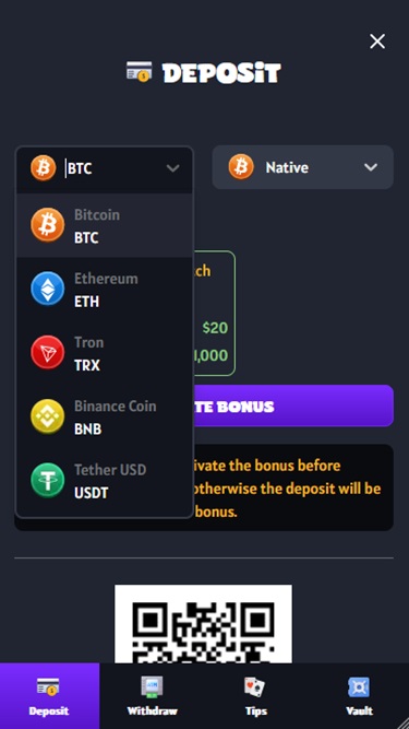 ध्यान रखें कि अगर आपके पास पहले से क्रिप्टो वॉलेट नहीं है, तो आपको इसकी ज़रूरत पड़ेगी। अगर आपको इसे बनाने का तरीका समझ नहीं आ रहा है, तो आप कैसीनो की वेबसाइट पर इसके बारे में विस्तृत निर्देश पा सकते हैं।