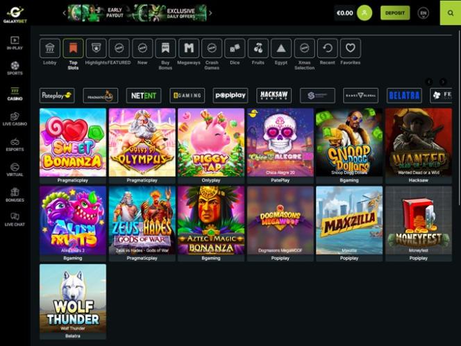 हालांकि कैसीनो की गेमिंग लाइब्रेरी को थोड़ा बेहतर ढंग से व्यवस्थित किया जाना चाहिए और उपलब्ध खेलों को बेहतर ढंग से वर्गीकृत किया जाना चाहिए, गैलेक्सीबेट गेम संग्रह कई ऑनलाइन कैसीनो सॉफ्टवेयर प्रदाताओं द्वारा संचालित है और इस जुआ साइट के माध्यम से ब्राउज़ करना लाभदायक हो सकता है।