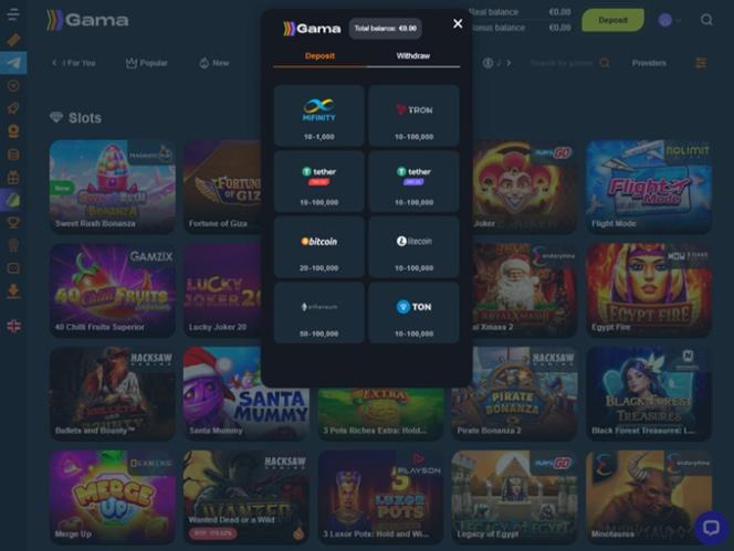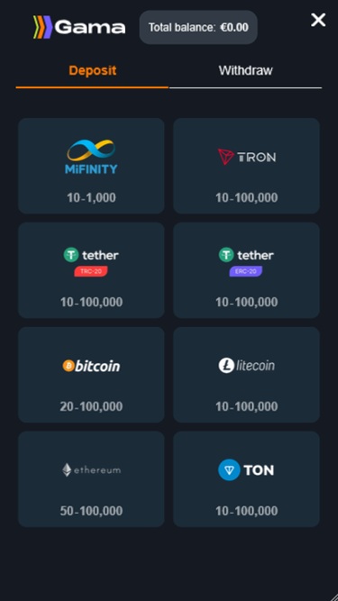 गामा कैसीनो अपने खिलाड़ियों को वीज़ा , मास्टरकार्ड, स्क्रिल, नेटेलर, जेटन और रैपिड जैसी लोकप्रिय भुगतान विधियों का उपयोग करने की सुविधा प्रदान करता है। यदि आप क्रिप्टोकरेंसी को अपनी प्राथमिक भुगतान विधि के रूप में उपयोग करना चाहते हैं, तो आप ऐसा कर सकते हैं, बशर्ते ऑपरेटर इसकी अनुमति दें।