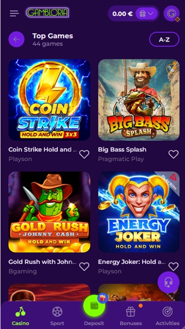 स्लॉट्स, टेबल गेम्स और गेम शो के अलावा, गैम्बलबोरिया कैसीनो में इंस्टेंट क्रैश गेम्स और अन्य विशेष प्रकार के गेम्स का भी अच्छा संग्रह है। यह विविधता खिलाड़ियों को छिपे हुए रत्नों को आज़माने और खोजने के लिए ढेरों विकल्प प्रदान करती है, साथ ही उन्हें हमेशा सबसे लोकप्रिय विकल्पों पर वापस जाने का मौका भी देती है।