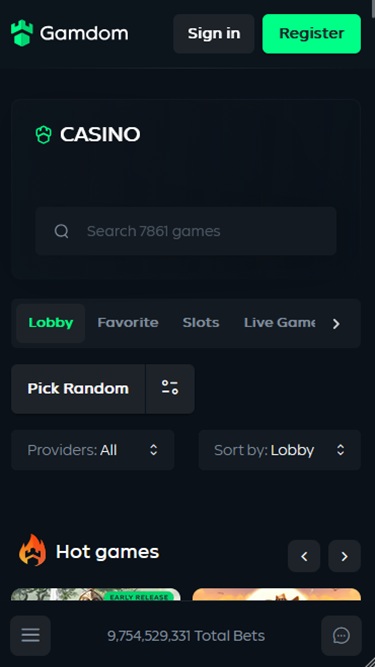 हेडर के अंदर अच्छी तरह से छिपा हुआ, एक मुख्य ड्रॉप-डाउन मेनू भी है जिसमें क्रैश, रूलेट, हाईलो (अद्वितीय गेमडोम गेम), स्लॉट और कैसीनो जैसे विभिन्न मेनू विकल्प हैं, साथ ही ई-स्पोर्ट्स सट्टेबाजी और स्पोर्ट्स सट्टेबाजी जैसे विकल्प भी हैं।
