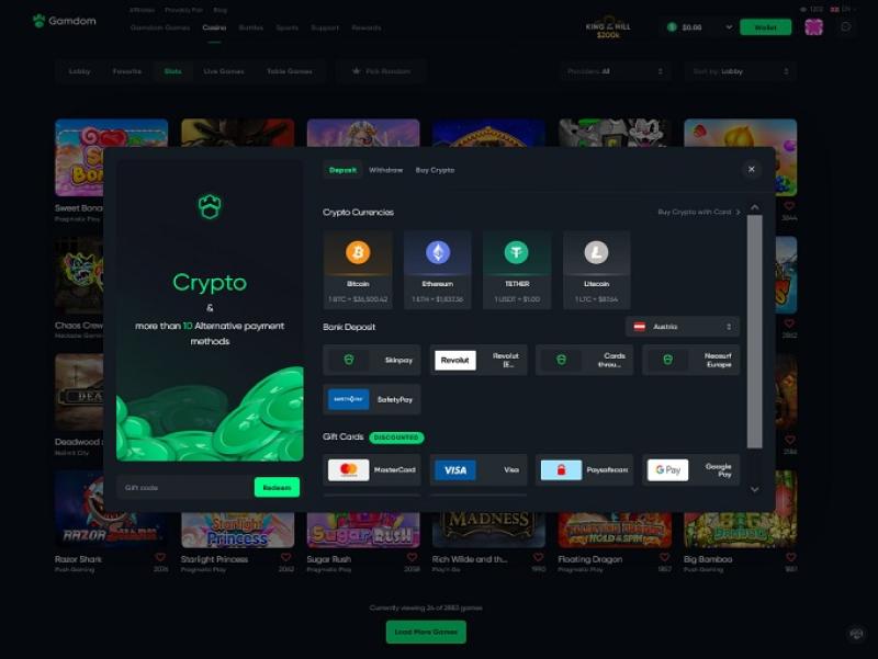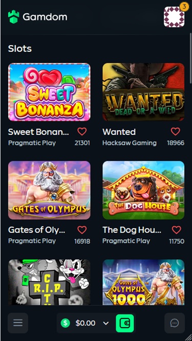 गैमडोम के लोकप्रिय ऑनलाइन स्लॉट शीर्षक हैं: स्वेट बोनान्ज़ा, द डॉग हाउस, बुक ऑफ डेड, मनी ट्रेन 2, फ्रूट पार्टी, गेट्स ऑफ ओलंपस, डेडवुड, स्वीट बोनान्ज़ा क्रिसमस, बुक ऑफ शैडोज़, लिगेसी ऑफ डेड, रिच वाइल्ड एंड द टोम ऑफ मैडनेस, द डॉग हाउस मेगावेज़, जेम्स बोनान्ज़ा, कैओस क्रू, रेज़र शार्क, बिग बास बोनान्ज़ा, रिएक्टूनज़, राइज़ ऑफ मर्लिन, वाइल्ड वेस्ट गोल्ड, जैमिन जार, बुक ऑफ सन चॉइस, स्नेक एरिना, रिलीज़ ऑफ क्रैकन हनी रश, द हैंड ऑफ मिडास, मिस्ट्री म्यूज़ियम, मनी ट्रेन, टॉम्ब स्टोन, सैन क्वेंटिन, फायर इन द होल, मैडम डेस्टिनी मेगावेज़, फ्लोटिंग ड्रैगन होल्ड एंड स्पिन, रोमन लीजन, आयरन बैंक, नो लिमिट पंक रॉकर, रिटर्न ऑफ कोंग मेगावेज़ रोश इम्मॉर्टेलिटी क्यूब मेगावेज़, जूसी फ्रायट्स, वुल्फ गोल्ड...