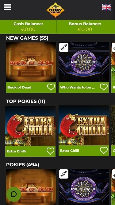 G'Day Casino Microgaming, Net Entertainment, 1x2gaming, Barcrest, Big Time Gaming, ELK Studios, Evolution Gaming, EYECON, Ezugi, Genesis Gaming, lightningboxgames, Play'n GO, Quickspin, Rabcat, Relax Gaming, Endorphina, Realistic Games, Pragmatic Play, Nolimit City, Felt Gaming, Red Tiger Gaming, Skillzzgaming, Fantasma Games, ReelNRG, FUGA Gaming, Kalamba, Revolver Gaming, Sigma Gaming, Concept Gaming, Northern Lights Gaming, Electric Elephant Games, Pocket Games Soft, Bulletproof Games, All41 Studios, Gameburger Studios, Pulse 8 Studios, Neon Valley Studios, Golden Rock Studios, HungryBear Gaming, GONG Gaming, On Air Entertainment, Buck Stakes Entertainment, Games Global, 2by2 Gaming, Ainsworth, Bally Technologies, Blueprint Gaming, Endemol Games, Games Warehouse, Greentube, Leander Games, Merkur Gaming, multicommerce, NYX Interactive, Probability, Push Gaming, Inspired Gaming, Cayetano, SG Interactive, Red7Mobile, CORE Gaming, Authentic Gaming, Iron Dog Studio, Old Skool Studios, Foxium, Betdigital, Just For The Win, Reflex Gaming, Bla Bla Bla Studios, MetaGU, PearFiction Studios, Apollo Games, Fortune Factory Studios, Jade Rabbit Gaming, Green Jade Games, 4ThePlayer, Crazy Tooth Studio, High 5 Games, Mutuel Play, Pirates Gold Studios, SGS Universal, Alchemy Gaming, BB Games, Black Pudding Games, Hacksaw Gaming, Max Win Gaming, Gold Coin Studios, Half Pixel Studios, SilverBack Gaming, Eurostar Studios, Armadillo Studios, Lucksome Gaming, RAW iGaming and Leap Gaming द्वारा संचालित है, जिससे इसे दर्जनों शीर्षकों वाली एक विशाल गेमिंग लाइब्रेरी मिलती है। कैसीनो एक वेब-आधारित प्लेटफ़ॉर्म के माध्यम से सुलभ है, जिसका अर्थ है कि आप सीधे अपने वेब ब्राउज़र के माध्यम से खेल सकते हैं। कैसीनो की एक मोबाइल वेबसाइट भी है, जहाँ आप अपने स्मार्टफ़ोन और टैबलेट के माध्यम से खेल सकते हैं।Blackjack
