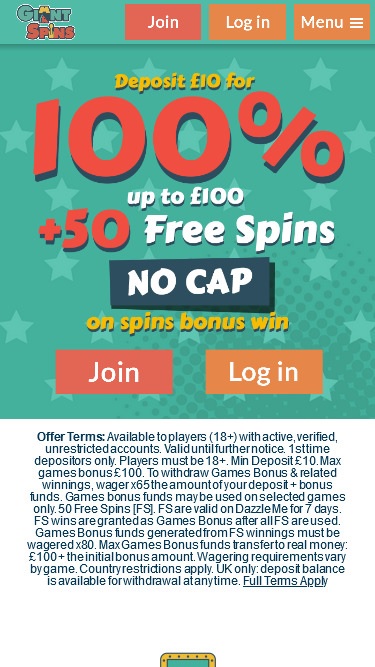 जायंट स्पिन्स कैसीनो एक ऑनलाइन सट्टेबाजी साइट है जिसकी स्थापना 2018 में हुई थी और इसका संचालन कसावा एंटरप्राइजेज द्वारा किया जाता है। अगर यह साइट आपको जानी-पहचानी लग रही है, तो इसकी एक वजह है। इस साइट का नाम पहले विनरू था और 2018 में इसका नाम बदलकर क्रिस्टल स्पिन्स कर दिया गया, और फिर उसी साल इसका नाम बदलकर जायंट स्पिन्स कर दिया गया। यहाँ हमारे पास एक ऐसी वेबसाइट है जो लगभग बाकी दोनों जैसी ही है। इसका मतलब है कि आपको एक अच्छी वीआईपी स्कीम, अच्छी मोबाइल संगतता और eCOGRA प्रमाणित निष्पक्ष गेम मिलेंगे।