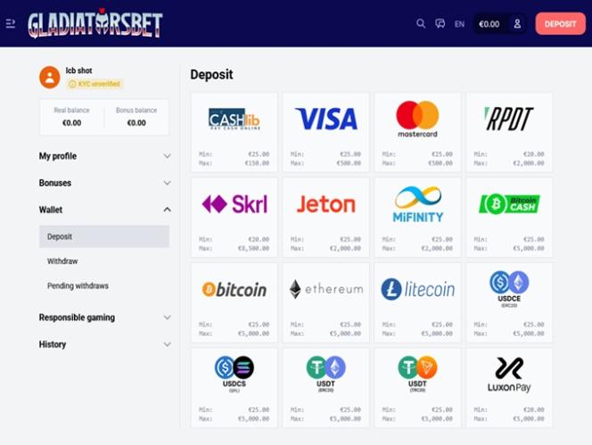 यदि आप स्वयं को क्रिप्टो के प्रति उत्साही मानते हैं, तो आपको यह जानकर खुशी होगी कि ग्लेडिएटरबेट इस मामले में भी खरा उतरता है, और बिटकॉइन और लाइटकॉइन सहित कई अलग-अलग क्रिप्टो मुद्राओं को स्वीकार करता है।