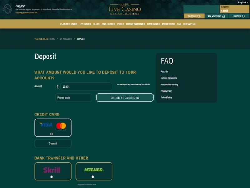 ग्लोबल लाइव कैसीनो वर्तमान में अपने ग्राहकों को कॉम्प पॉइंट्स प्रदान नहीं करता है।