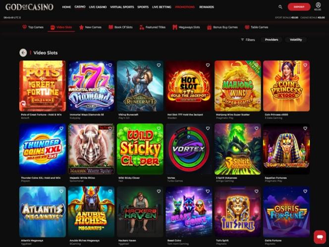गॉड ऑफ़ कैसीनो कनाडा, जर्मनी, ऑस्ट्रिया और आयरलैंड के खिलाड़ियों का स्वागत करता है। यह उन्हें गेमिंग और स्पोर्ट्स बेटिंग विकल्पों की एक विस्तृत श्रृंखला प्रदान करने का वादा करता है। इस ब्रांड में ऑनलाइन स्लॉट, लाइव डीलर, टेबल गेम और क्रैश गेम्स सहित कैसीनो गेम्स की एक विस्तृत लाइब्रेरी के साथ-साथ स्पोर्ट्स बेटिंग विकल्पों, प्रमोशन और बोनस की एक विस्तृत श्रृंखला भी शामिल है।