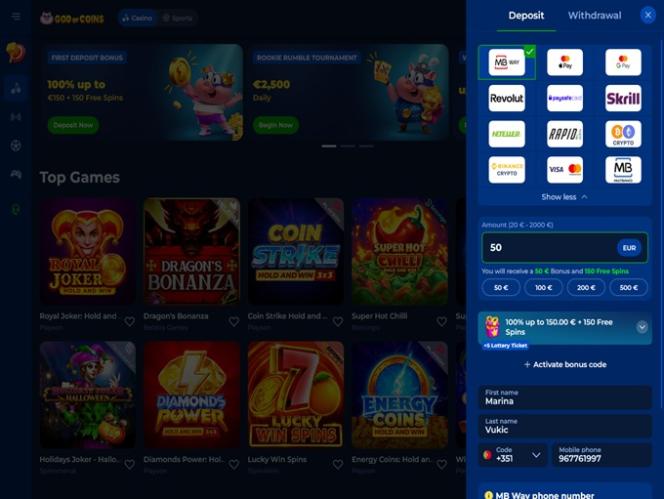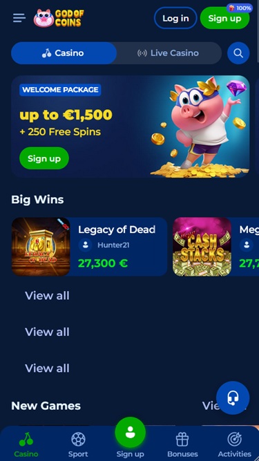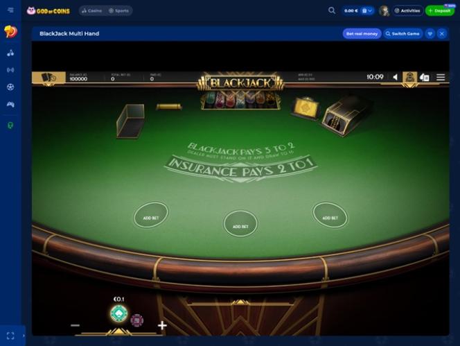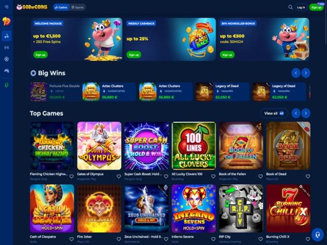गॉड ऑफ़ कॉइन्स कैसीनो एक स्पोर्ट्स बेटिंग वेबसाइट और ऑनलाइन कैसीनो है जो कुराकाओ के कानूनों के तहत निगमित है और पोलैंड, ग्रीस, पुर्तगाल और ऑस्ट्रेलिया के खिलाड़ियों के लिए है। हमारे दौरे के समय, कैसीनो जीसीबी - गेमिंग कंट्रोल बोर्ड द्वारा जारी लाइसेंस प्राप्त करने की प्रक्रिया में था।