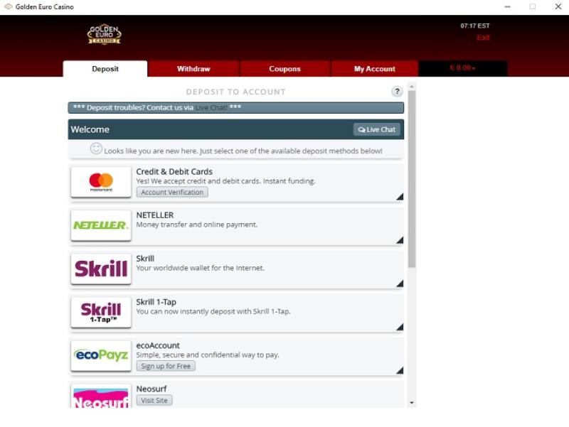 Golden Euro Casino पर बैंकिंग विकल्प