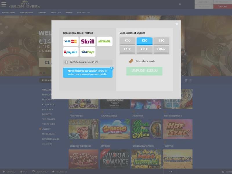Golden Riviera Casino को इस साइट से उनकी ईमानदारी और ग्राहक सहायता के लिए समर्थन प्राप्त है। हम केवल उन्हीं सर्वश्रेष्ठ इंटरनेट कैसीनो का समर्थन करते हैं जिन पर हम व्यक्तिगत रूप से भरोसा करते हैं, और हमें Golden Riviera Casino के साथ साझेदारी करने पर गर्व है।