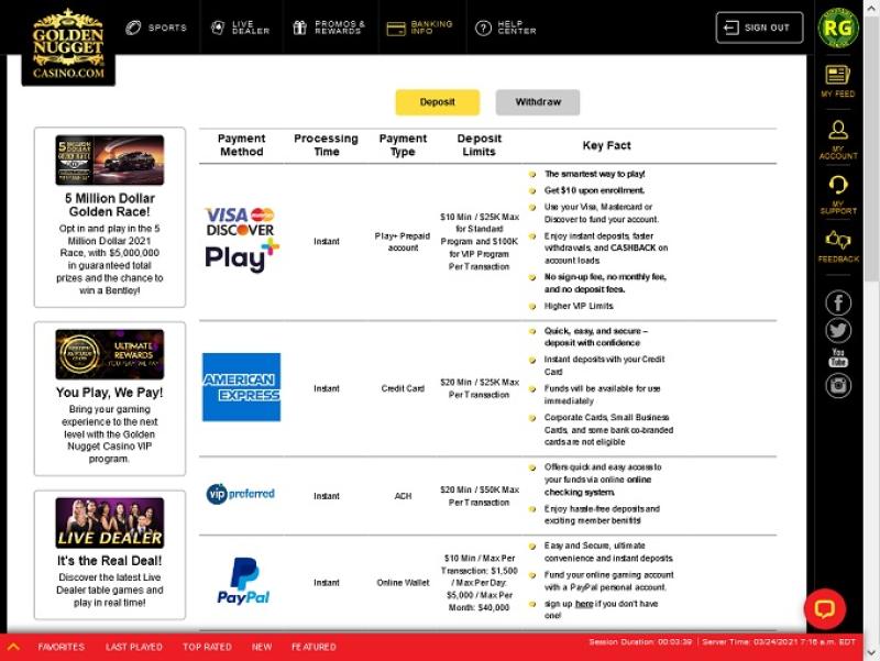 मानक खेलों के अलावा, गोल्डन नगेट एनजे अपने ग्राहकों को लाइव डीलर गेम के साथ-साथ एक पूर्ण स्पोर्ट्सबुक भी प्रदान करता है।