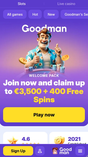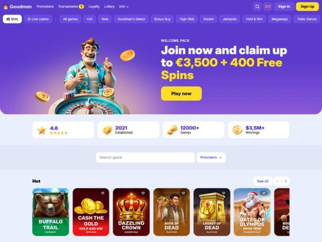 गुडमैन कैसीनो एक ऑनलाइन कैसीनो है जिसका स्वामित्व और संचालन दामा एनवी द्वारा किया जाता है। यह क्रिप्टो-फ्रेंडली स्थल कुराकाओ लाइसेंस रखता है।