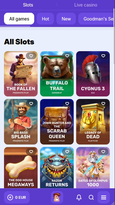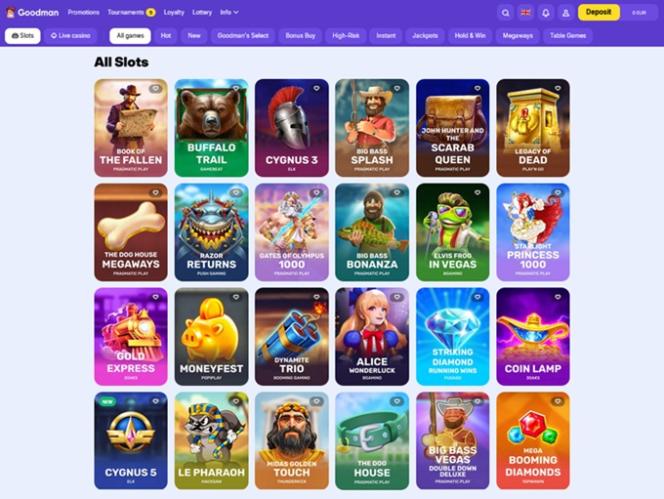 मनोरंजन की इस दुनिया में कदम रखते ही, यह स्पष्ट हो जाता है कि गुडमैन कैसीनो का गेमिंग कैटलॉग विभिन्न प्रकार के उपभोक्ताओं की ज़रूरतों को पूरा करता है। बेलाट्रा, यग्द्रासिल, एंडोर्फिना , इवोल्यूशन, थंडरकिक और आर्केडम, लॉबी में प्रदर्शित कई आपूर्तिकर्ताओं में से कुछ हैं।