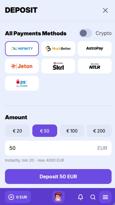 दूसरी ओर, विकल्पों और मुद्राओं की एक विस्तृत श्रृंखला उपलब्ध है, जिसमें एथेरियम, लाइटकॉइन, टीथर, बीटीसी जैसी क्रिप्टो संपत्तियाँ और अन्य शामिल हैं। बैंक हस्तांतरणों को छोड़कर, सभी जमा और निकासी की प्रक्रिया तुरंत पूरी होती है। कोई शुल्क नहीं लिया जाता। सभी प्रगतिशील जैकपॉट जीत का पूरा भुगतान किया जाता है, और मासिक निकासी सीमाएँ बहुत उदार हैं।
