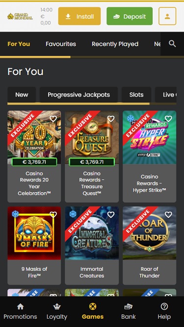 Grand Mondial कैसीनो ने 2006 में अपने दरवाजे खोले और यह कैसीनो रिवॉर्ड्स के स्वामित्व और संचालन वाले कई कैसीनो में से एक है। इस कैसीनो को इसके ग्राहक आमतौर पर सकारात्मक दृष्टि से देखते हैं, जो 400 से ज़्यादा गेम्स की लाइब्रेरी और अच्छी सेवा का आनंद लेते हैं, लेकिन गैर-जैकपॉट जीत पर कैसीनो की निकासी सीमा को ज़रूरी तौर पर स्वीकार नहीं करते।कैसीनो जानकारी