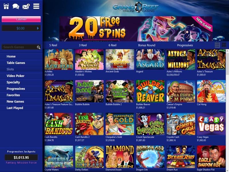 Grand Reef Casino एक ऑनलाइन सट्टेबाजी साइट है जिसकी स्थापना 2010 में हुई थी और इसका स्वामित्व और संचालन रैंड लॉजिक गेमिंग एनवी द्वारा किया जाता है। इस कैसीनो की थीम अंडरवाटर है, जो साइट को एक दिलचस्प लुक और फील देती है, और इसमें कुछ बेहतरीन Playtech स्लॉट और टेबल गेम भी हैं। पिछले कुछ वर्षों में, इस कैसीनो ने खुद को खेलने के लिए एक अनिश्चित जगह के रूप में स्थापित कर लिया है, क्योंकि उपभोक्ता असभ्य ग्राहक सेवा और कई तरह के बोनस की शिकायत करते हैं।