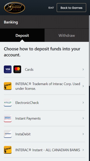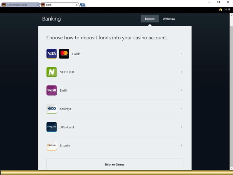 Grand Hotel Casino पर बैंकिंग विकल्प