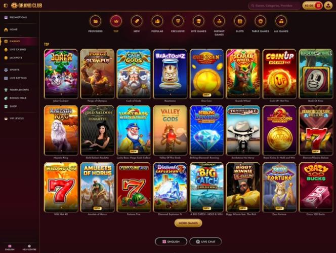 यही वजह है कि हमें यह देखकर खुशी हुई कि ग्रैंड क्लब कैसीनो अपने खिलाड़ियों को ब्राउज़ करने के लिए अनगिनत गेम्स उपलब्ध कराता है। यह उन लोगों के लिए एक बेहतरीन विकल्प है जो नियमित रूप से कुछ नया आज़माना पसंद करते हैं, क्योंकि इसमें कई सॉफ्टवेयर प्रदाता मौजूद हैं।