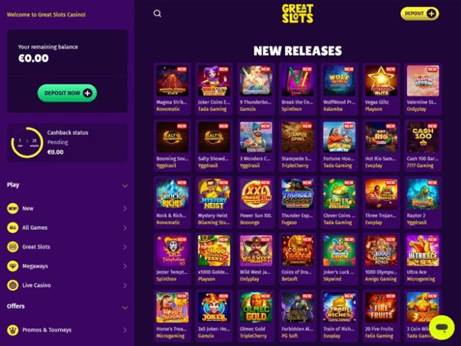 ग्रेट स्लॉट्स कैसीनो, जैसा कि इसके नाम से पता चलता है, एक जुआ साइट है जो मुख्य रूप से वास्तविक धन वाले स्लॉट्स का एक विशाल संग्रह प्रदान करती है। इसका विशाल संग्रह चौंका देने वाला है और इसमें खेलने के लिए हजारों अनूठे स्लॉट्स शामिल हैं, जिनमें सभी लोकप्रिय श्रेणियां और शैलियाँ शामिल हैं, साथ ही मेगावे, क्लासिक, नवीनतम रिलीज़, जैकपॉट, होल्ड एन लिंक्स, क्लस्टर पे, पेनी स्लॉट्स और बहुत कुछ जैसी नवीन सुविधाएँ भी हैं।
