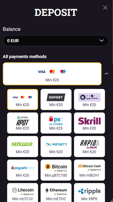 गन्सबेट का बैंकिंग सिस्टम बेहतरीन है, क्योंकि कैसीनो बैंक वायर, iDeal, Maestro, MasterCard, Skrill, Neteller, Paysafecard, Visa, Sofort, Trustly, Bitcoin, Zimpler आदि के माध्यम से जमा और निकासी की सुविधा प्रदान करता है। बिटकॉइन और ई-वॉलेट के लिए भुगतान तुरंत होता है, जबकि क्रेडिट और डेबिट कार्ड से भुगतान प्रक्रिया में कुछ दिन लगते हैं। ध्यान दें कि जीत पर प्रति सप्ताह $10,000 और प्रति माह $30,000 की निकासी सीमा है।