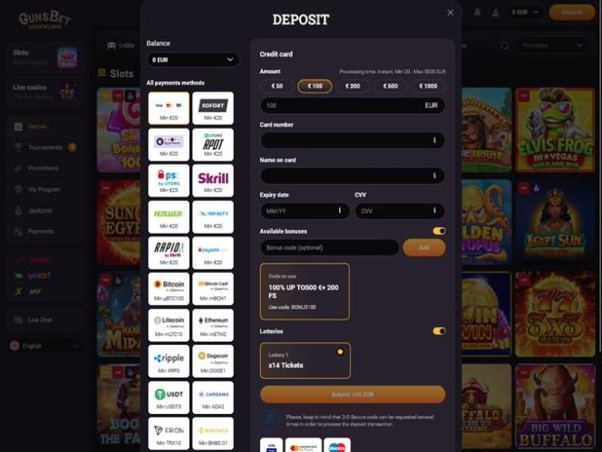 GunsBet Casino पर बैंकिंग विकल्प