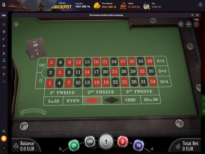 - रूले, अमेरिकी रूले पर 500 बार
