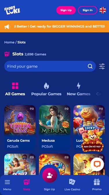 हैप्पी ल्यूक कैसीनो Evolution Gaming, Habanero Systems, Play'n GO, Relax Gaming, WM, Pragmatic Play, Nolimit City, Fantasma Games, Spadegaming, Evoplay, SA Gaming, Pocket Games Soft, Mancala Gaming, SmartSoft Gaming, Blueprint Gaming, Wager Gaming, Reel Time Gaming, BF Games, Wild Streak Gaming, Gamzix, Slotmill, Dragon Gaming, FastSpin, Lucksome Gaming, Dragoon Soft, Aviatrix, Dream Gaming, AE Sexy, Yeebet Gaming, Spribe and Reel Kingdom द्वारा संचालित है, और कैसीनो के गेम एक वेब-आधारित, इंस्टेंट प्ले प्लेटफ़ॉर्म के माध्यम से प्रदान किए जाते हैं जो सीधे आपके इंटरनेट ब्राउज़र के माध्यम से लोड होता है। यह साइट मोबाइल उपकरणों को भी सपोर्ट करती है, यानी आप अपने स्मार्टफोन या टैबलेट के ज़रिए खेल सकते हैं।