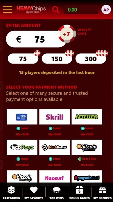 HeavyChips Casino स्क्रीनशॉट