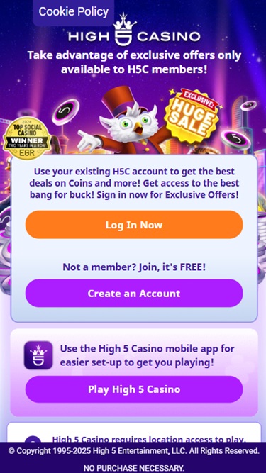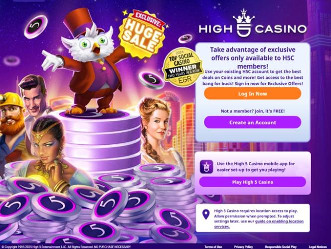 हाई 5 सोशल गेमिंग की दुनिया में सबसे प्रतिष्ठित नामों में से एक है, जो दशकों के लैंड-बेस्ड डेवलपमेंट के अनुभव को स्वीपस्टेक्स मार्केट में लेकर आया है। साइट कैसीनो-शैली के खेलों का एक विशाल कैटलॉग प्रदान करती है, जिसमें ऑनलाइन स्लॉट और लाइव डीलर्स का व्यापक संग्रह शामिल है। यह ब्रांड संयुक्त राज्य अमेरिका के सभी खिलाड़ियों के लिए खुला है, हालांकि इडाहो, मिशिगन, नेवादा और वाशिंगटन जैसे कुछ क्षेत्रों में इसकी उपलब्धता सीमित है।